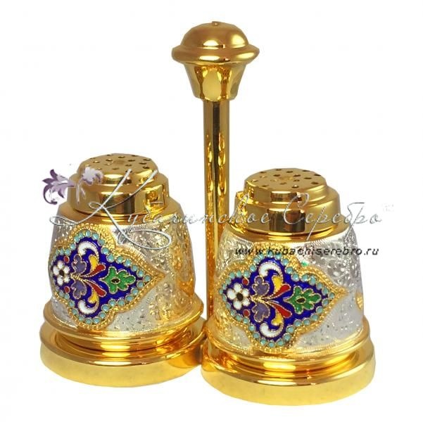 Набор для специй "Двойка" с позолотой и эмалью , арт №2374