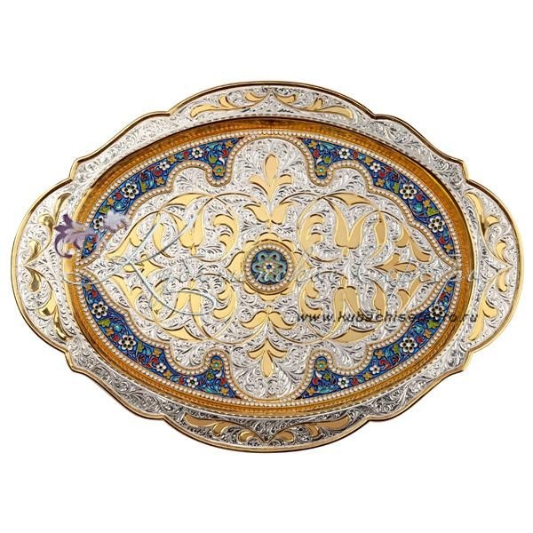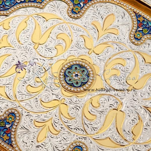 Серебряный поднос с эмалью и позолотой, арт №1119