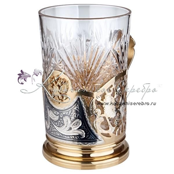 Серебро 875 пробы. С позолотой 999 пробы. С гербом России. Стакан в комплекте.