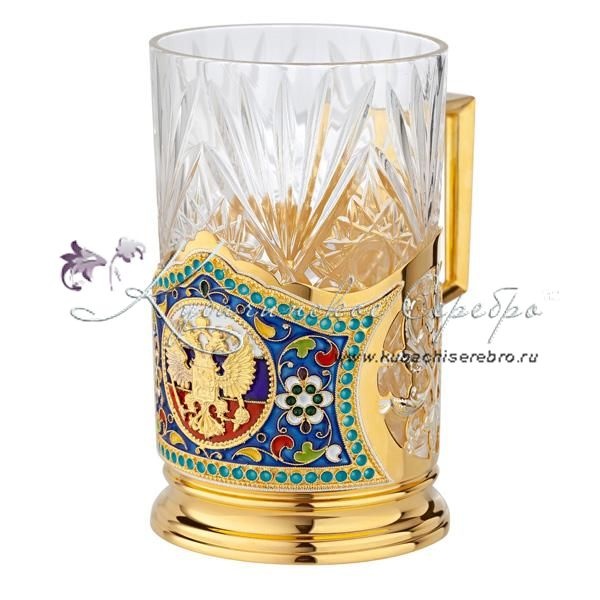 Подстаканник с позолотой и горячей эмалью серия "Россия" , арт №8012