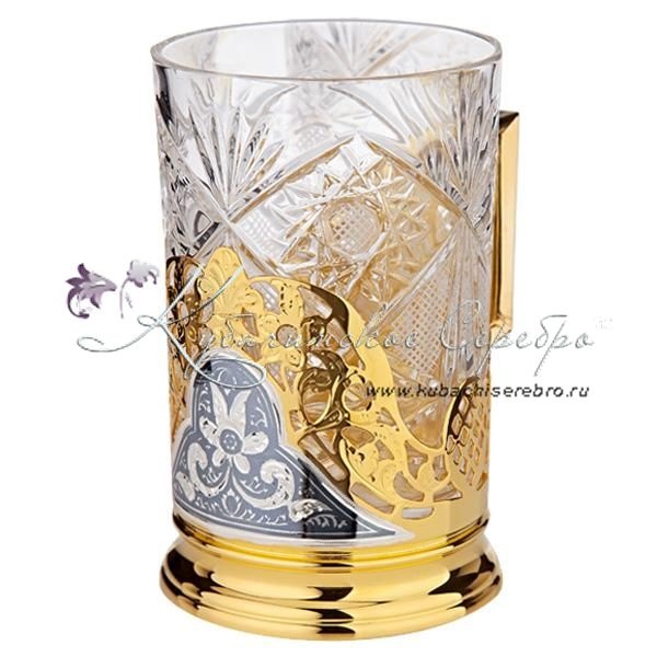 Серебро 875 пробы, с позолотой 999 пробы. Гарантия высшего качества! Стакан в комплекте.