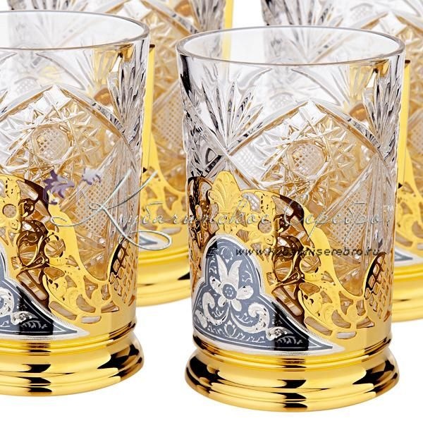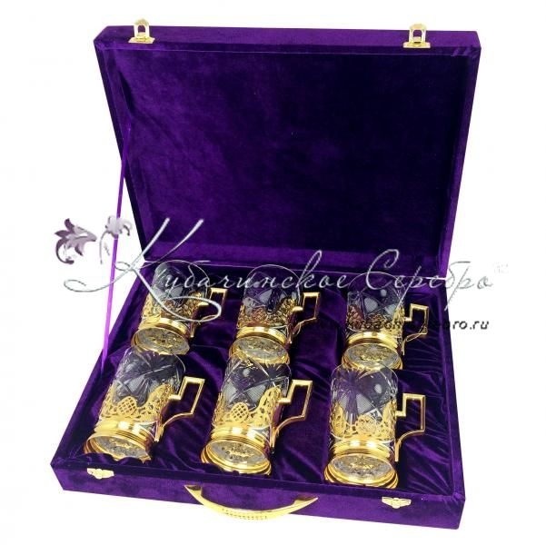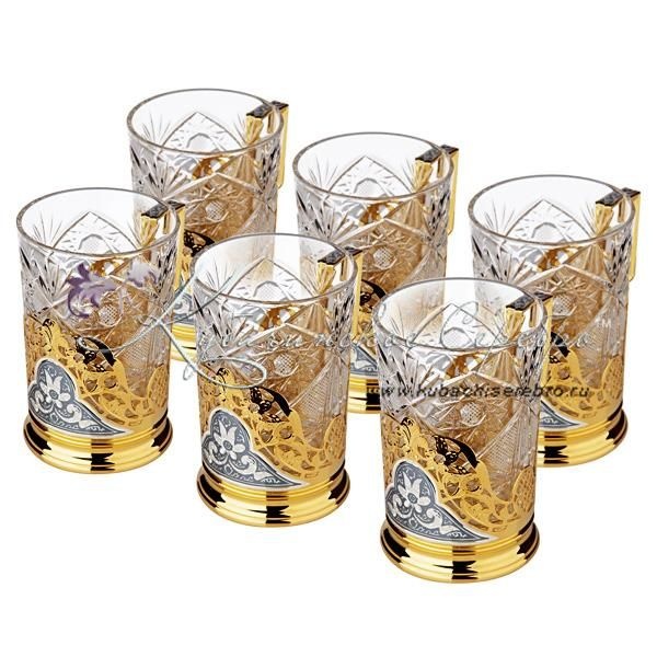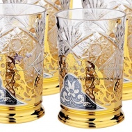 Набор подстаканников с позолотой на 6 персон , арт №7137