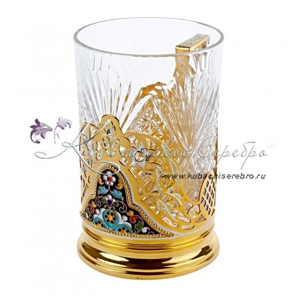 Подстаканник с позолотой и горячей эмалью, арт №8007