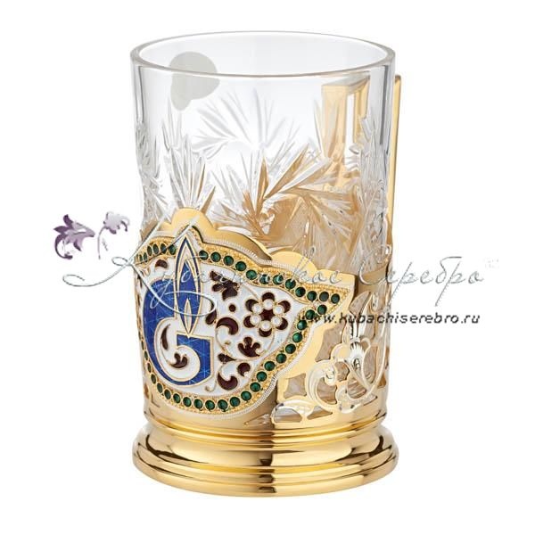 Подстаканник с позолотой и горячей эмалью "Газпром" , арт №6898