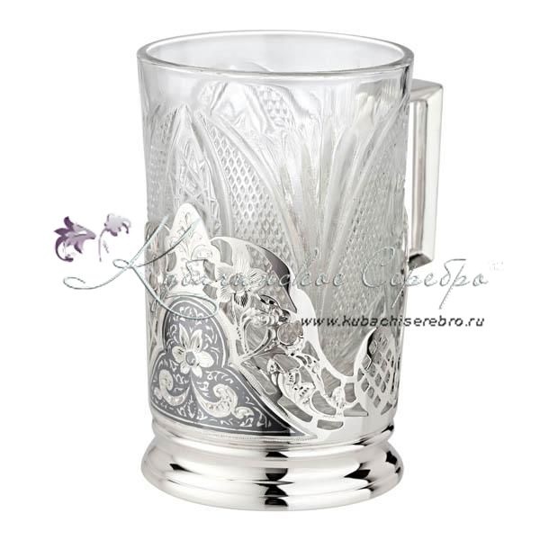 Серебро 875 пробы. Стакан стеклянный в комплекте.