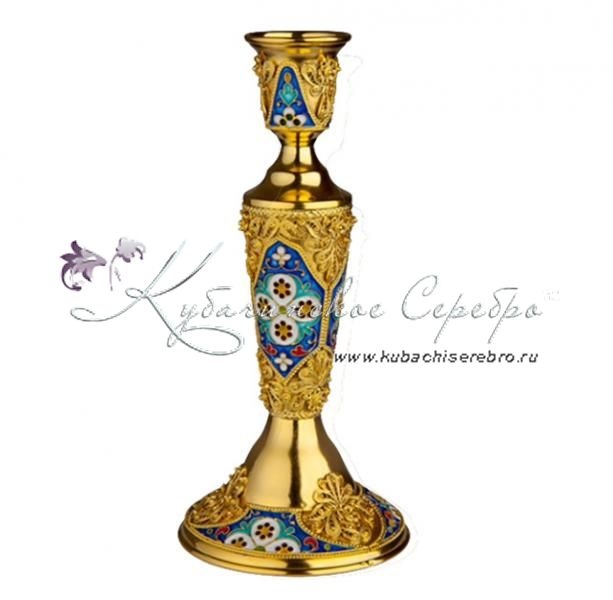 Подсвечник с позолотой, горячей эмалью и филигранью!, арт №9002
