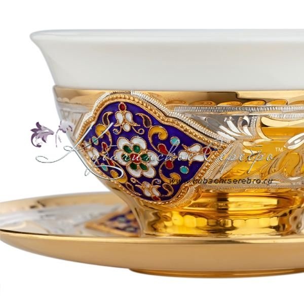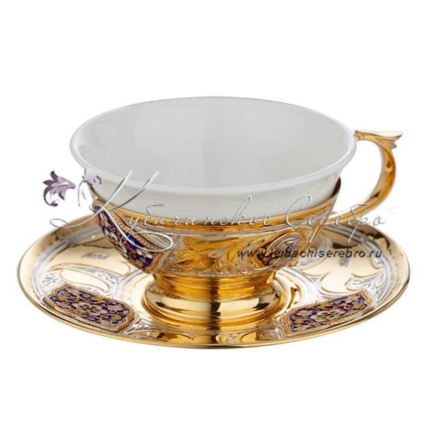 Чайная пара с эмалью и керамической вставкой на 130 мл , арт №6619