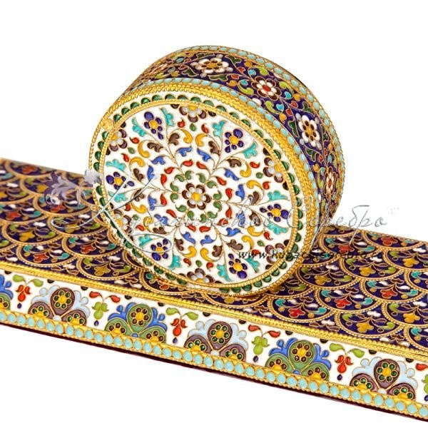 Серебро 960 пробы. Покрыты позолотой 999 пробы, с горячей эмалью. Выполнен на мраморной подставке. Прекрасный подарок руководителю или просто деловому человеку. Добавит роскошь в любой кабинет!