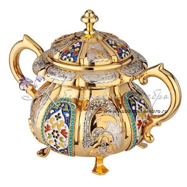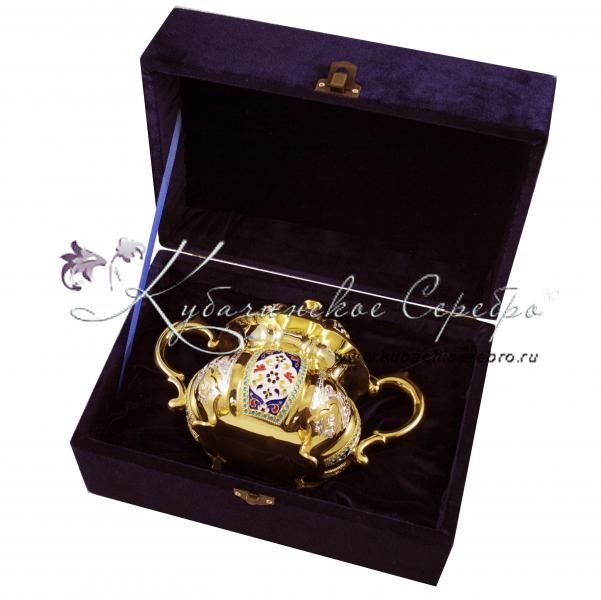 Серебро 875 пробы. Покрыта позолотой 999 пробы.
