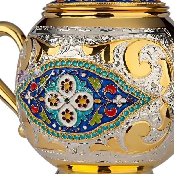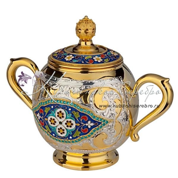 Сахарница с позолотой и горячей эмалью на 480 мл , арт №1450