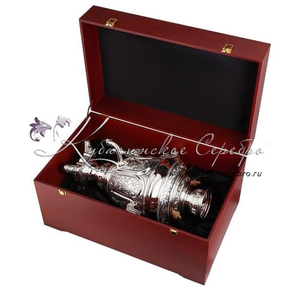 Серебро 875 пробы. Самовар электрический. Гарантия высшего качества от фирменного магазина! Параметры футляра: 55/35/31,5 см.