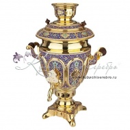 Самовар из серебра с горячей эмалью на 5 л , арт №2568