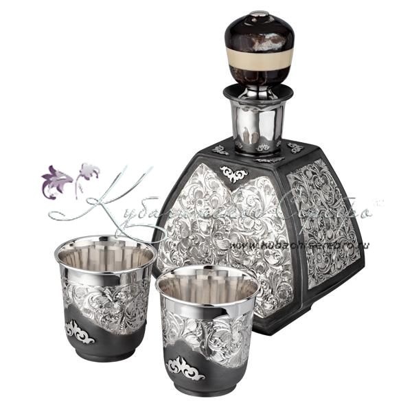 Серебро 875 пробы. Крышка выполенена из рога тура, инкрустированный с костью.