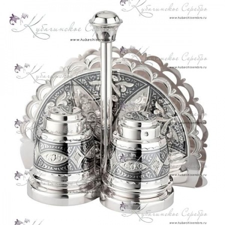 Серебро 875 пробы. В набор входят 2 солонки для соли и перца, а так же отдел для салфеток!