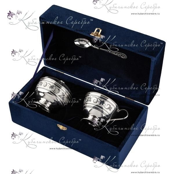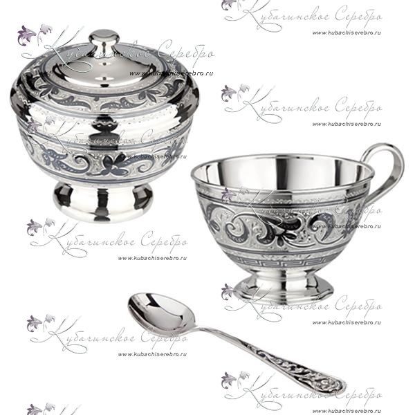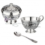 Набор из серебра и 875 пробы и чайная ложка из 925 пробы. В набор входит: сахарница, чашка и чайная ложка. Гарантия качества от фирменного магазина!