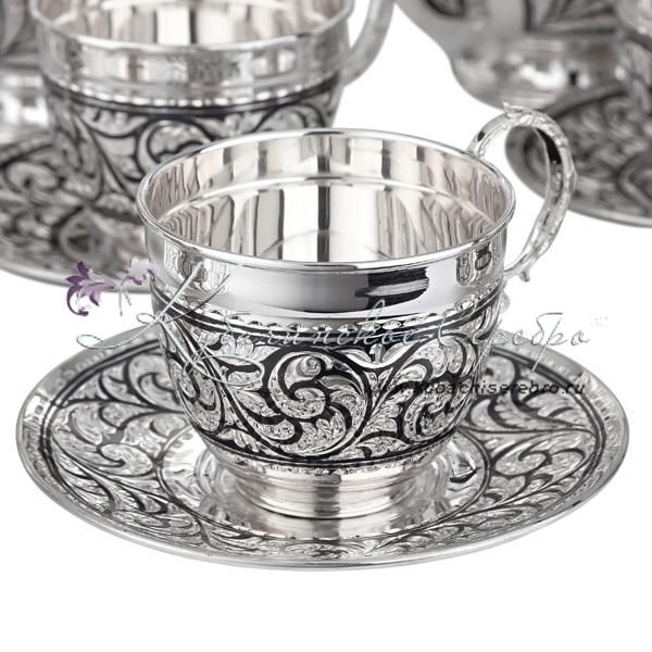 Сервиз чайный с чернью на 6 персон (Новинка), арт №7208
