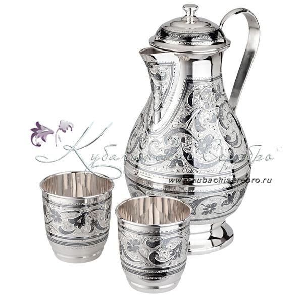 Серебро 875 пробы. В набор входят: кувшин и два стакана. Гарантия высшего качества от фирменного магазина!