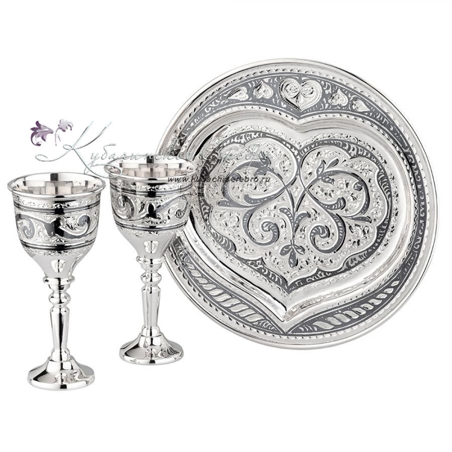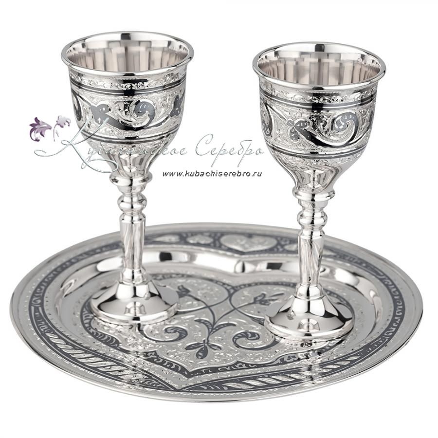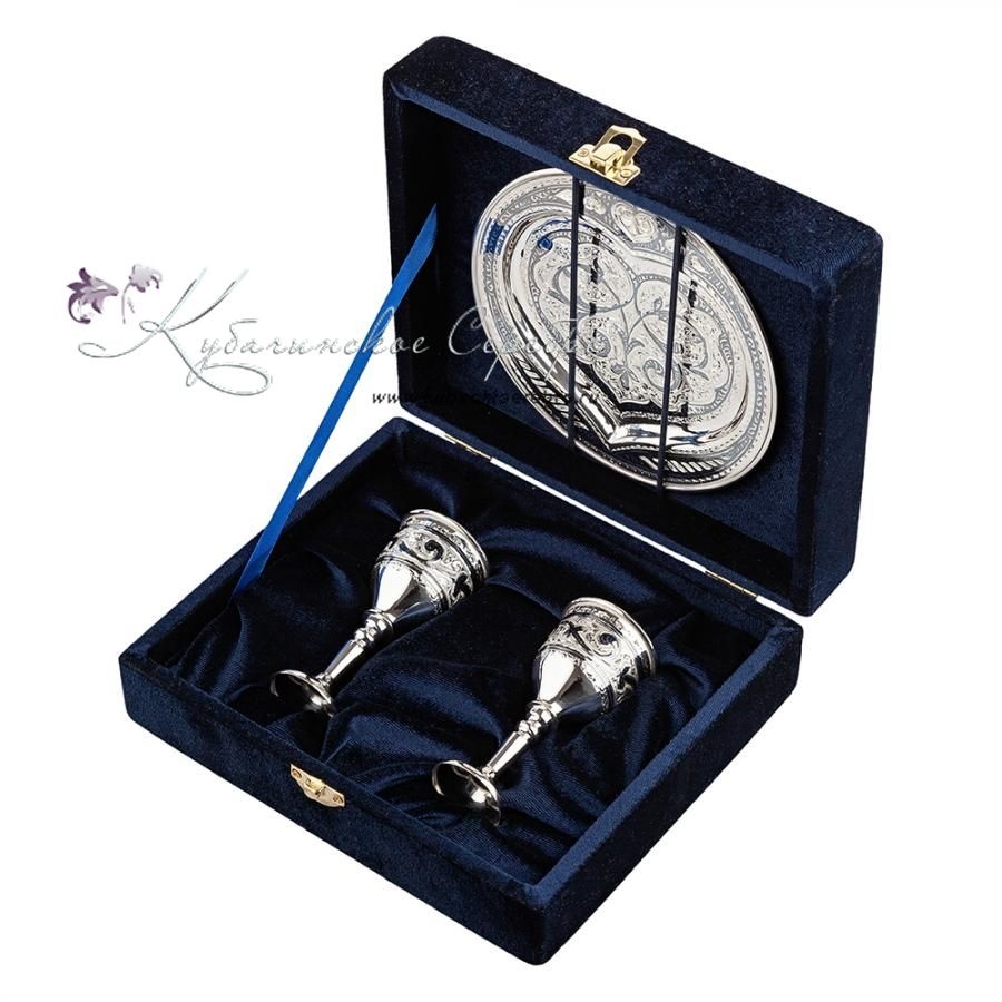 Серебро 875 пробы. Набор - поднос и две рюмки. Гарантия высшего качества от фирменного магазина!