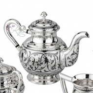 Серебро 925 пробы. В сервиз входят: чайник, сахарница, 2 чашки и 2 блюдца.