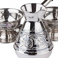 Серебро 875 пробы. В набор входят: турка, две кофейные пары.