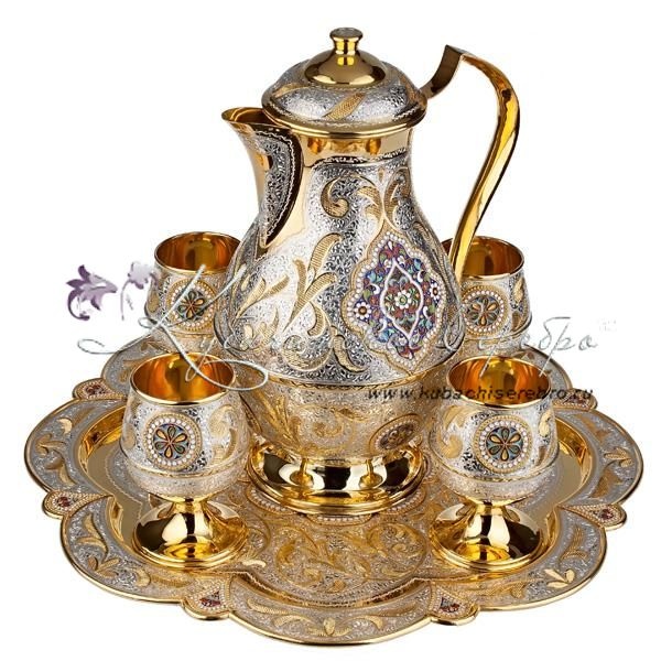 Сервиз из серебра с горячей эмалью!, арт №2227