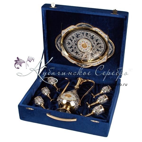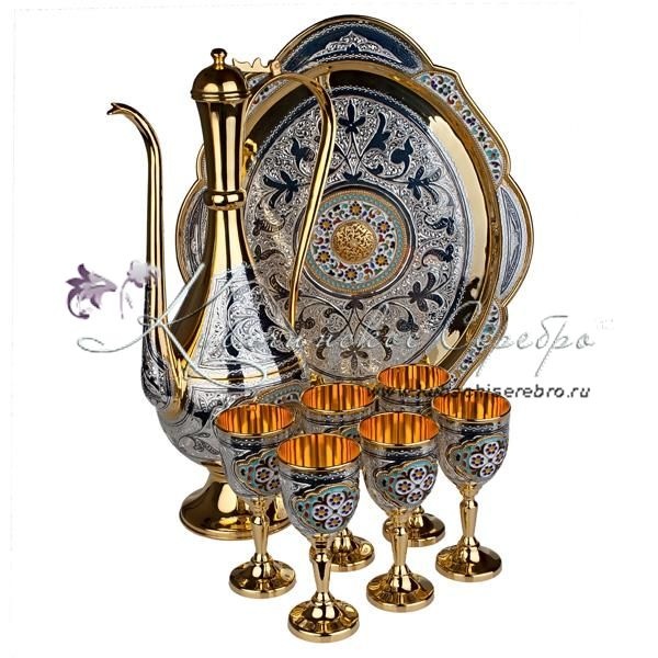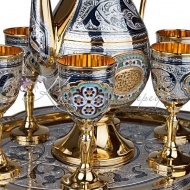 Сервиз коньячный с позолотой и горячей эмалью, арт №7042