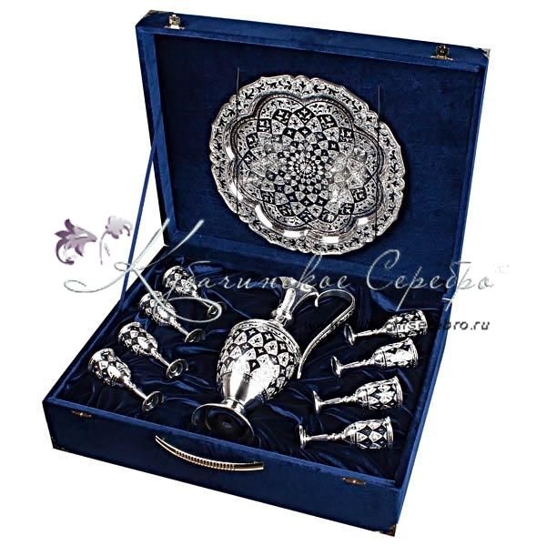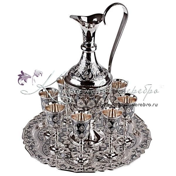 Сервиз из серебра 875 пробы. В сервиз входят : кувшин, поднос и 8 рюмок. Гарантия высшего качества от фирменного магазина!