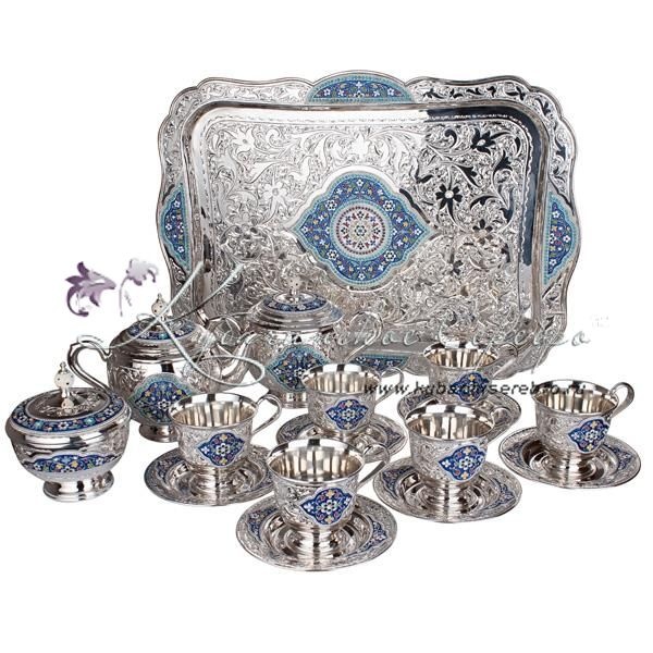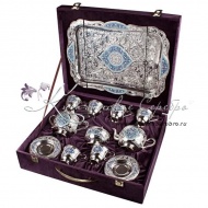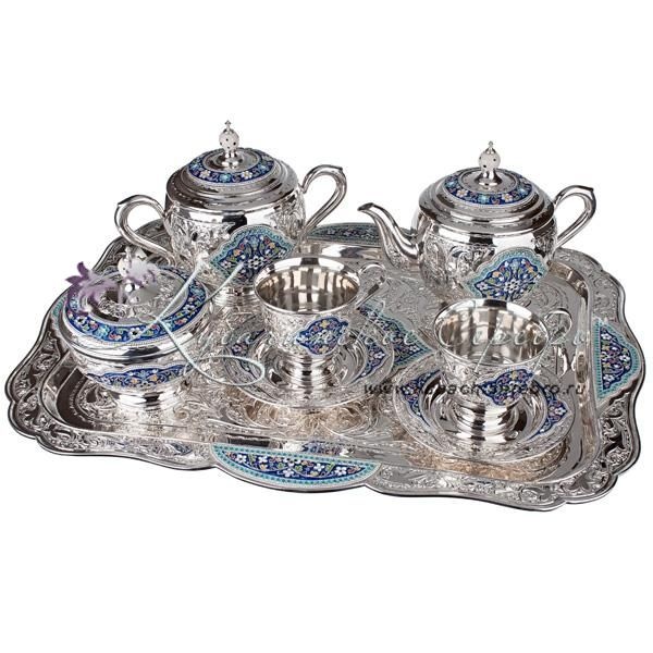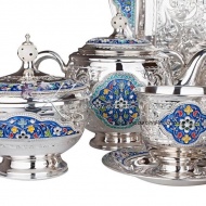 Серебро 875 пробы. Вставки с цветной горячей эмалью. Великолепный чайный сервиз от кубачинских ювелиров!