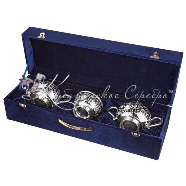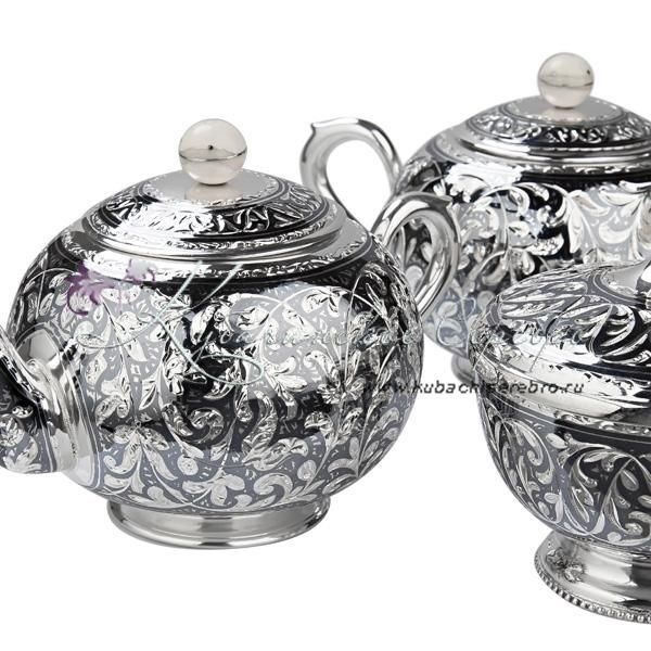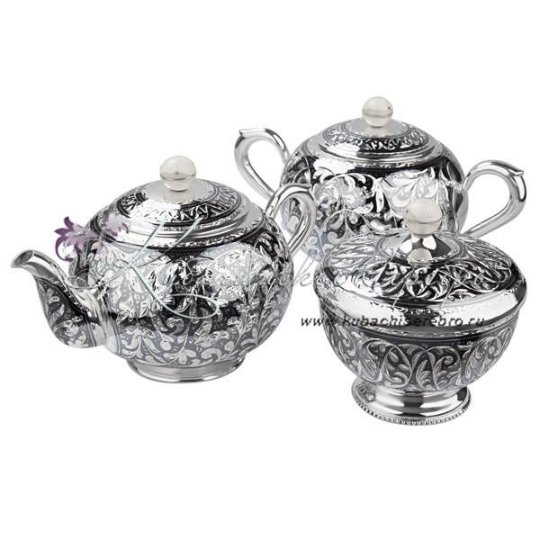 Серебро 875 пробы. В исполнении люкс плюс от кубачинских мастеров! В набор входят: чайник, сахарница, конфетница.