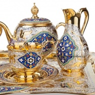 Сервиз чайный с позолотой и горячей эмалью серия "Версаль" , арт №7067