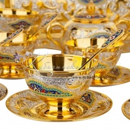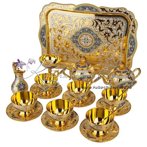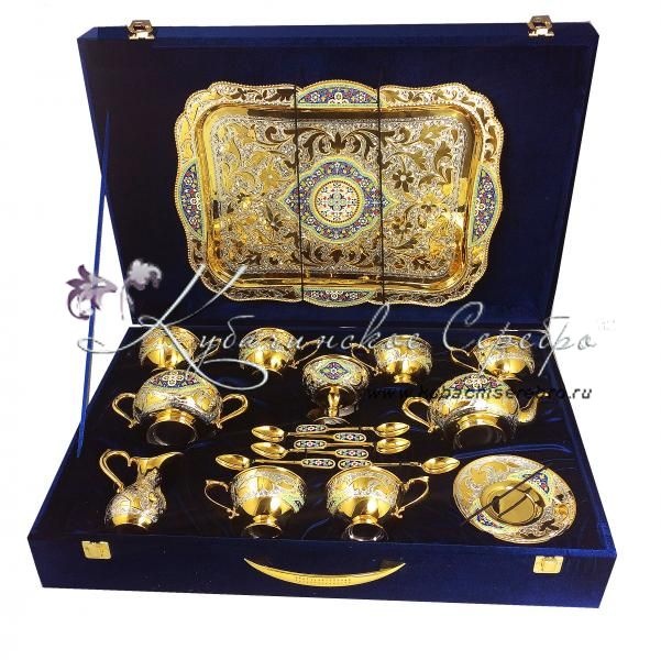 Чайный сервиз с позолотой и горячей эмалью, арт №7081