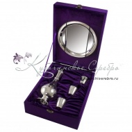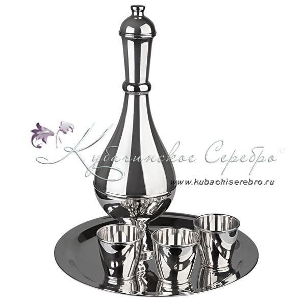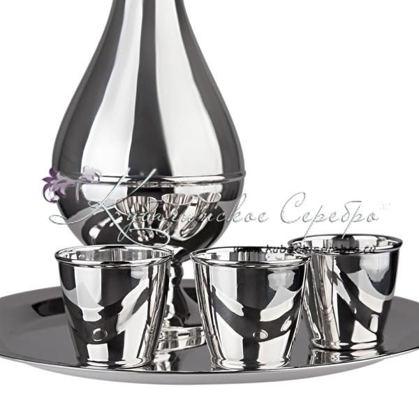 Серебро 875 пробы. В сервиз входят: поднос, графин, 3 стопки. Возможно нанесение подарочной надписи или любого рисунка.