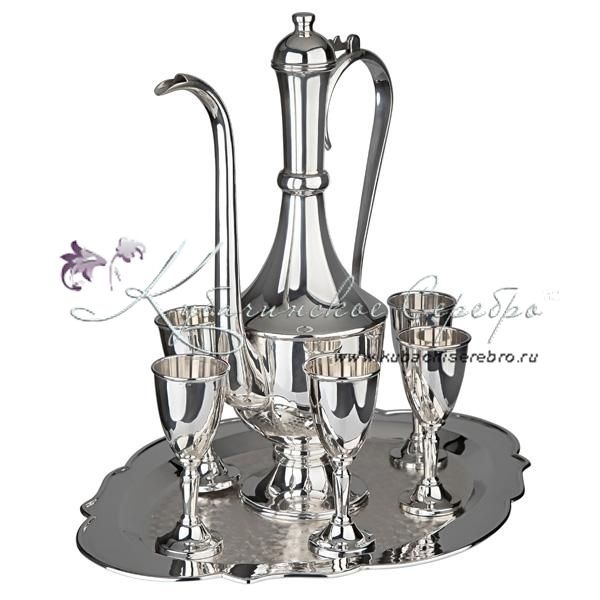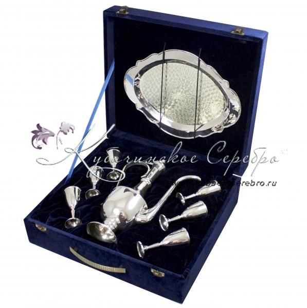 Серебро 875 пробы В сервиз входит-кувшин, 6 рюмок и поднос. Гарантия высшего качества от фирменного магазина! Возможно нанесение подарочной надписи или любого рисунка.