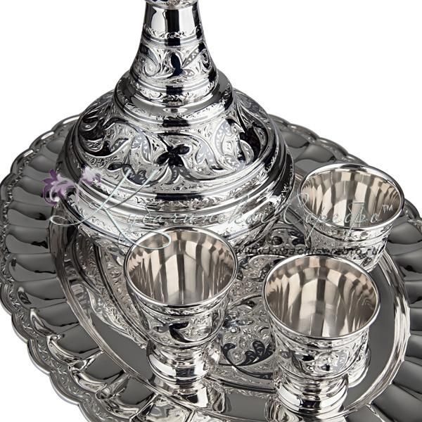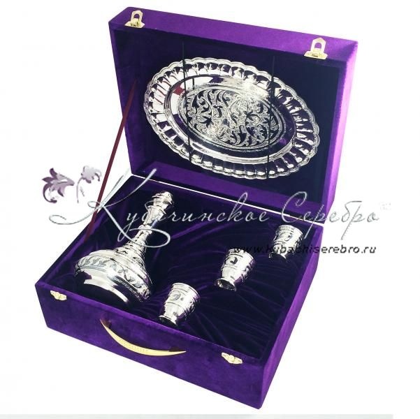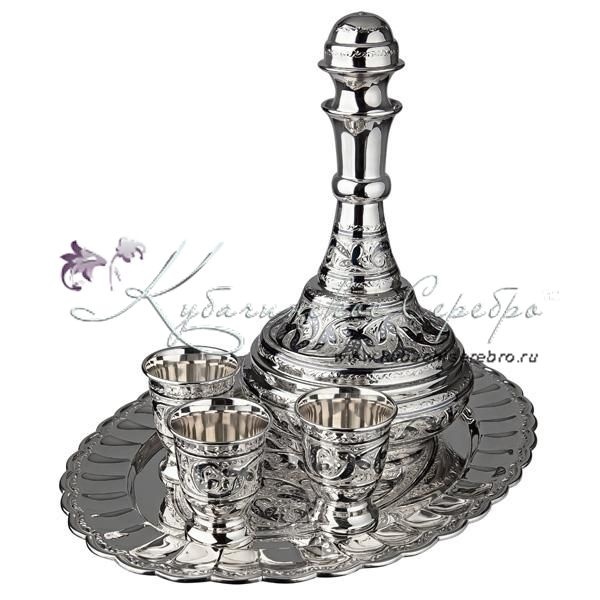 Серебро 875 пробы. В сервиз входят: графин, поднос, 3 стопки. Гарантия высшего качества от фирменного магазина!