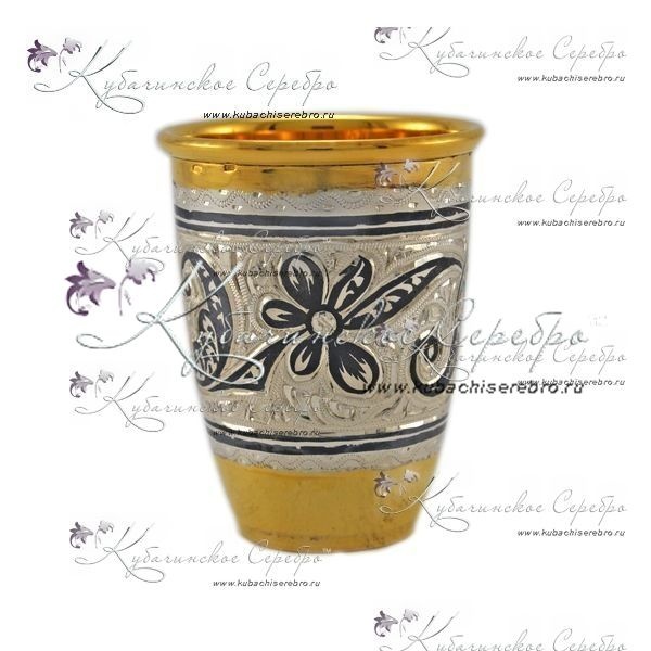 Набор серебряный фляга и три стопки с позолотой!, арт №7025