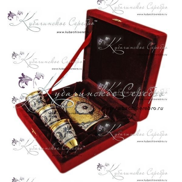 Серебряный набор 875 пробы . С позолотой 999 пробы. Объем фляжки 250 мл.