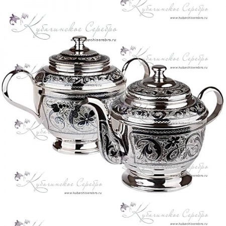 Серебро 875 пробы. В набор входят чайник и сахарница.