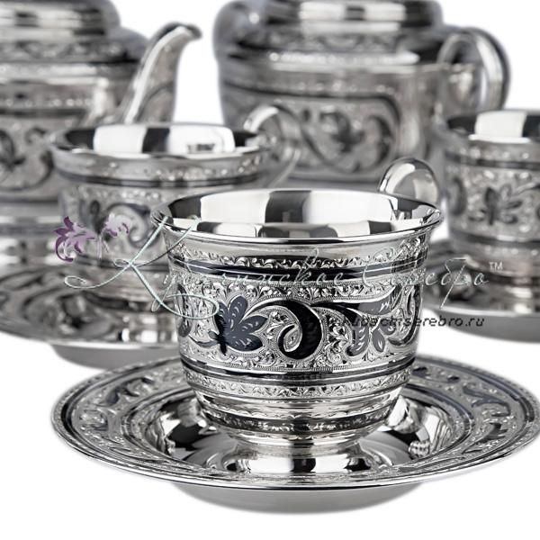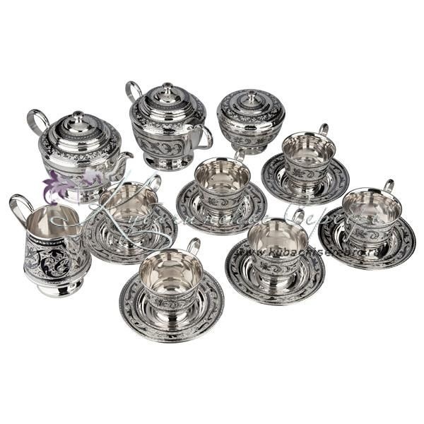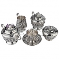 Серебро 875 пробы. В люксовом исполнении! Чайный сервиз от кубачинских ювелиров сделает чаепитие не только приятным, но и полезным! В сервиз входят: чайник, сахарница, конфетница, молочник, чашки с блюдцем 6 пар.