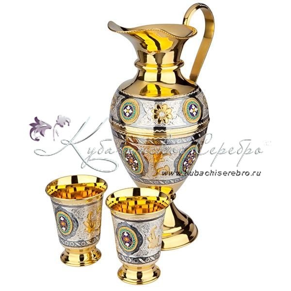 Набор для сока и воды с позолотой и горячей эмалью , арт №7146