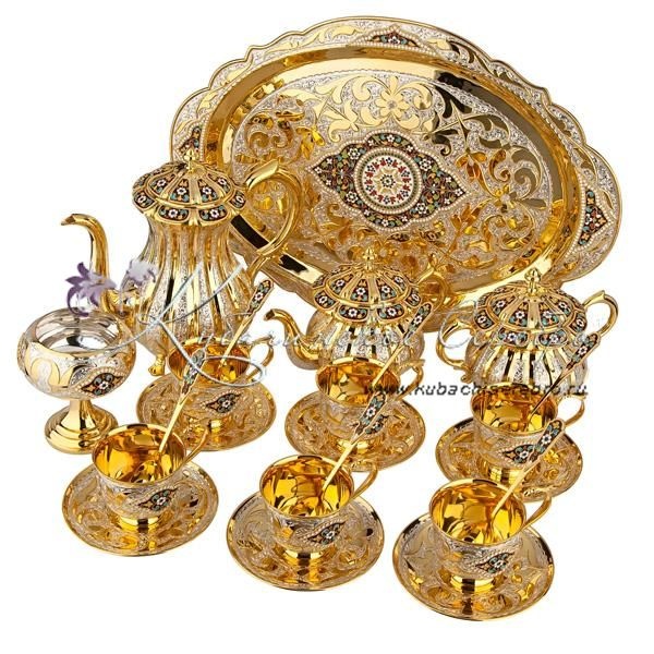 Чайный сервиз с позолотой и горячей эмалью , арт №7204