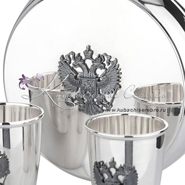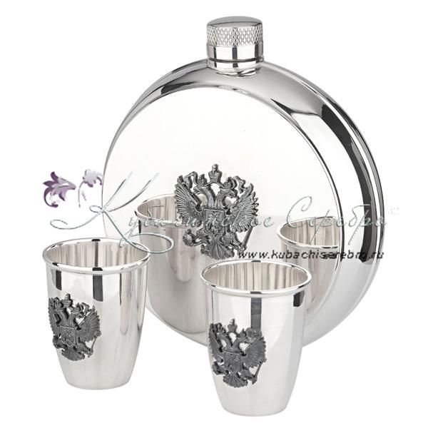 Серебро 875 пробы. В набор входят фляга и две стопки.