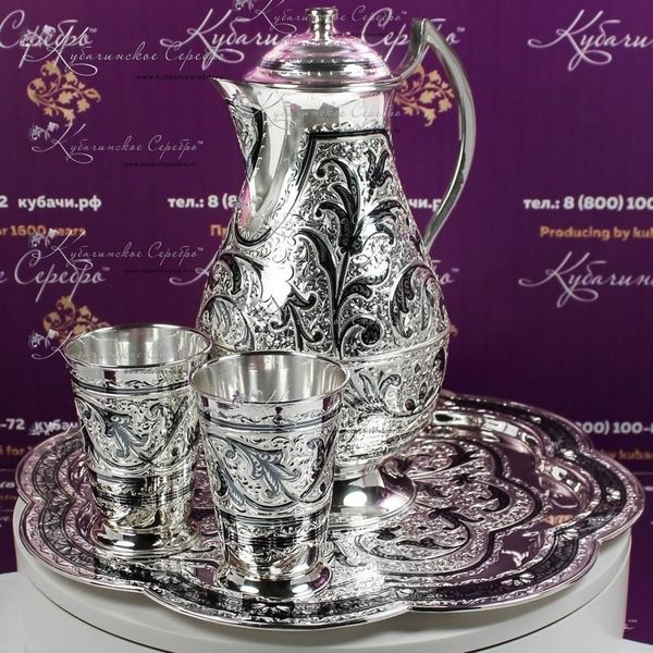 - Диаметр: Кувшина 12,5 см, стакана 6,9 см, подноса 33 см