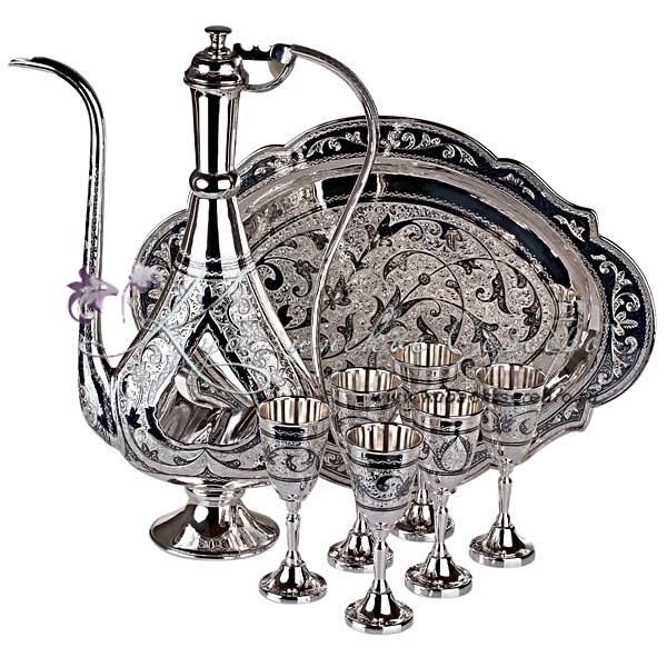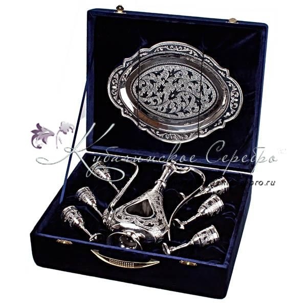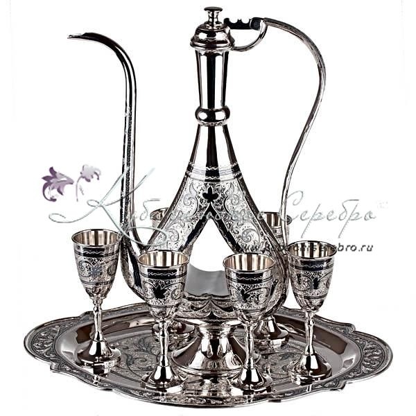 Серебро 875 пробы. В сервиз входят: кувшин, поднос и 6 рюмок. От кубачинских ювелиров в исполнении "Эксклюзив". Гарантия высшего качества!