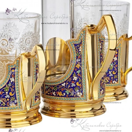 Чайный набор с позолотой и горячей эмалью , арт №7268