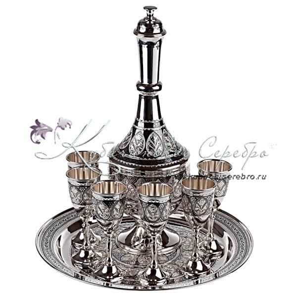 Серебро 875 пробы. В премиумном исполнении от кубачинских мастеров! В сервиз входят: графин, поднос и 6 рюмок.