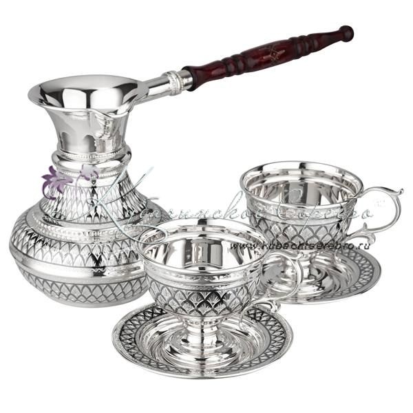 В набор входят: турка, две кофейные пары. Пить из серебряной посуды не только вкусно, но и полезно!