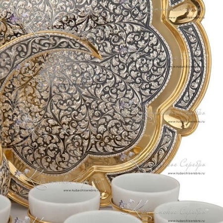 Сервиз кофейный с позолотой и чернением на 8 персон , арт №6870