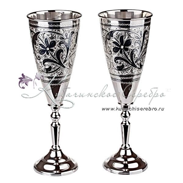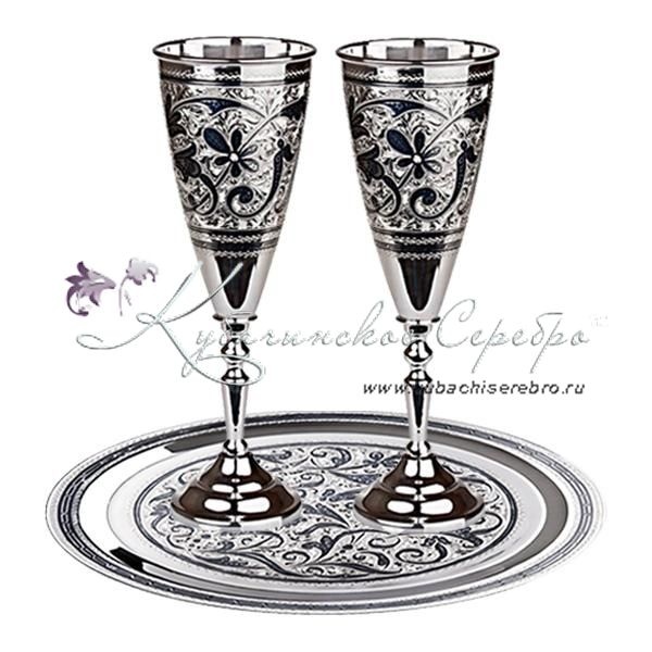 Серебряный набор на 2 персоны серия "Кубачи", арт №8273