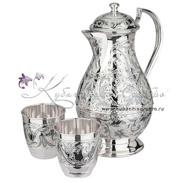 Серебро 875 пробы. Набор - кувшин и два стакана. Гарантия высшего качества от фирменного магазина!