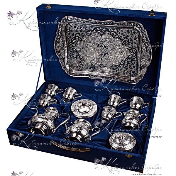Серебро 875 пробы. Великолепный чайный сервиз из серебра, от Кубачинских ювелиров! Сервиз состоит из подноса, чайника, сахарницы, вареньицы, молочника и 6 чашек с блюдцами. Гарантия высшего качества от фирменного магазина!